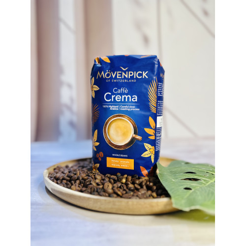 MOVENPICK Caffe Crema - кава найвищої якості. До складу входять зерна високоякісної стовідсоткової арабіки, зібраної з найкращих високогірних плантацій світу. Зерно обсмажене особливим способом та оброблено за оригінальними швейцарськими рецептами у власному цеху компанії Darboven s. Має неповторний аромат завдяки правильно підібраним температурним режимам і насиченим інтенсивним смаком з ніжною кремовою пінкаю.