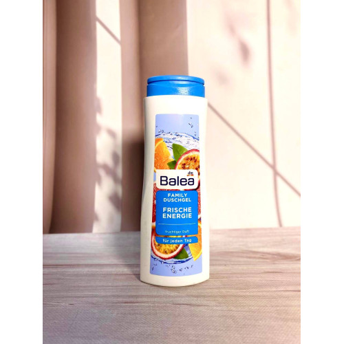 Сімейний гель для душу «Свіжість енергії» від бренда Balea має універсальну формулу, тому підходить усім типам шкіри і підтримує оптимальний рівень зволоженості. Життєрадісний аромат, зітканий з акордів апельсина, грейпфрута, маракуйї та чорної смородини, дарує приплив енергії і бадьорості. Молочні протеїни, що входять до складу засобу, містять вісім незамінних амінокислот, які не виробляються людським організмом, але відповідають за живлення шкіри, а також беруть участь у синтезі «білків молодості» — колагену й еластину. Молочна кислота також багата антимікробними речовинами, які відновлюють і пом’якшують чутливий епідерміс. Завдяки делікатній дії і яскравому літньому аромату з гелем для душу «Свіжість енергії» завжди приємно починати новий день.