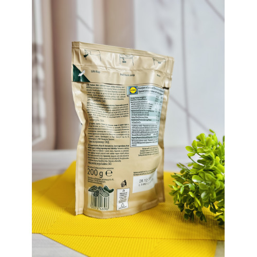 Вага - 200 грам. Сушений каліфорнійський мигдаль. У складі: очищений мигдаль 100%. Користь горіха: джерелом кальцію, заліза, магнію, фосфору і калію; в ньому багато вітамін групи В (В1, В2, В3, В5, В6, В9), а також токоферолу (вітаміну Е). Для підтримки нервової системи і нормального функціонування головного мозку лікарі рекомендують споживати 20-25 горішків в день. Людям у віці «50+» мигдаль може допомогти впоратися з недоумством і хворобою Альцгеймера. Харчові волокна допомагають «чистити» організм, вони живлять мікрофлору кишечника корисними бактеріями, і впливають на пребіотіческіх функцію.