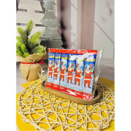 Шоколад молочний 90г (6 шт по 15 г) для дітей ONLY - якісний молочний шоколад буде приємним подарунком та ласощами до свята для дітей, оскільки представлений у формі шести маленьких шоколадок по 15 г кожна на паличці у формі Санта Клауса.