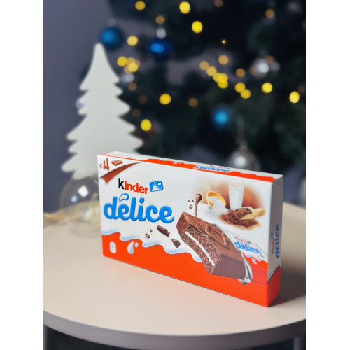 Бісквітне тістечко з молочною начинкою, вкрите какао-глазур’ю. Герметична упаковка дозволяє зберегти високі смакові якості та свіжість повітряного бісквіту, ніжної шоколадної глазурі та молочної начинки. Поживний, з насиченим смаком, Kinder Delice чудово підходить до будь-якої ситуації, коли хочеться перекусити та порадувати себе!